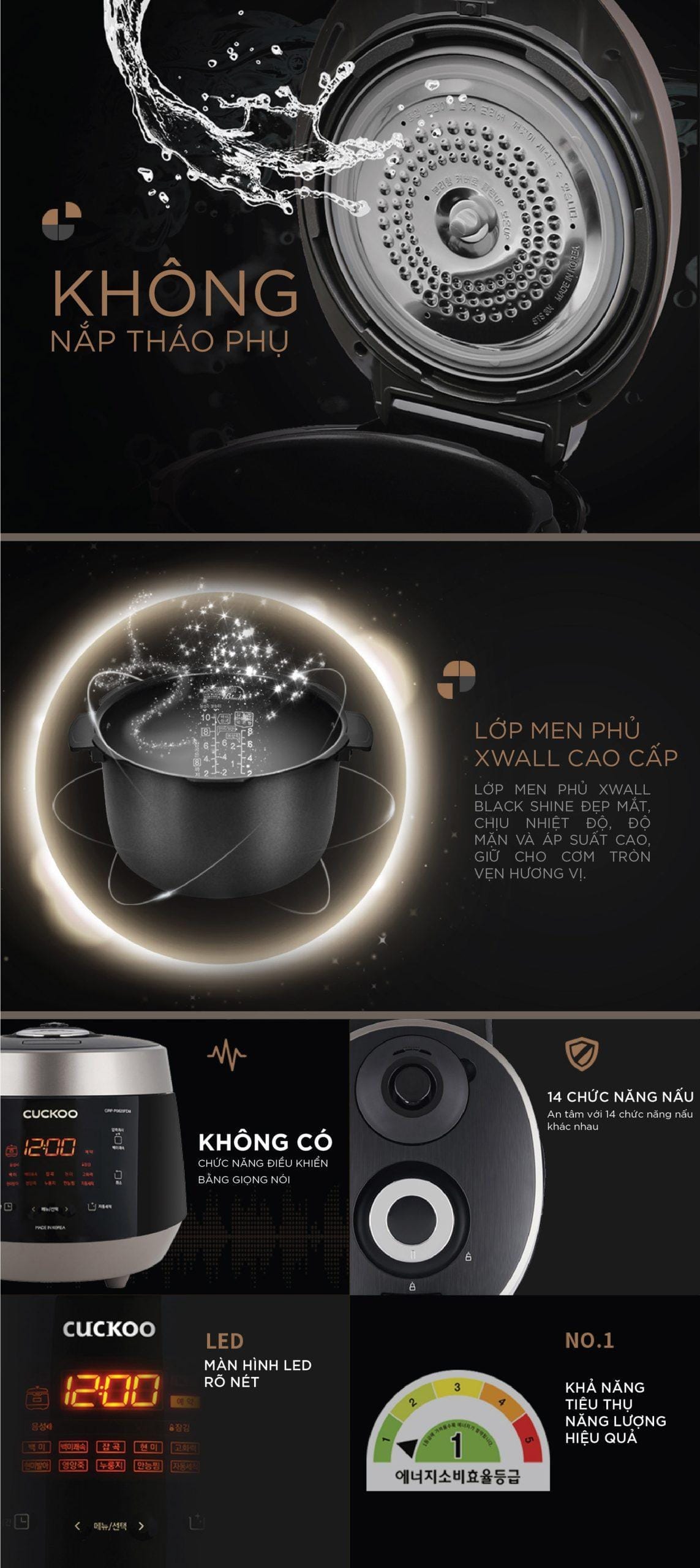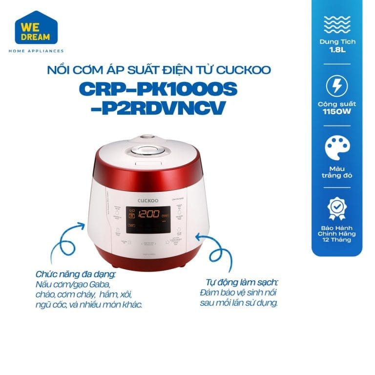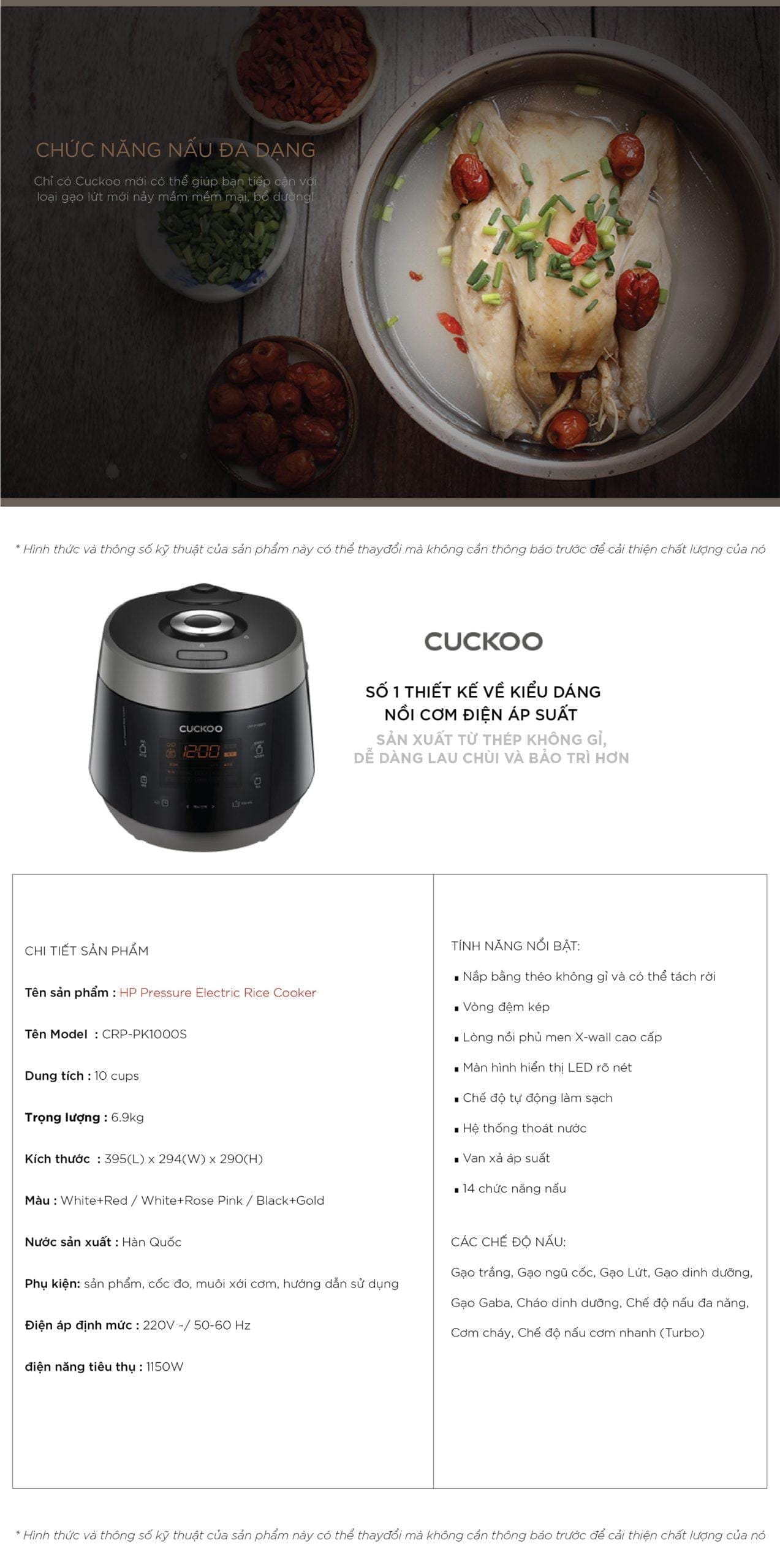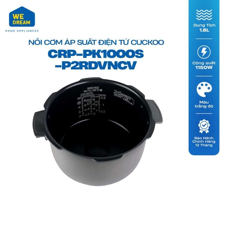Nồi Cơm Điện Tử Áp Suất Cuckoo 1.8 Lít CRP-PK1000S/P2RDVNCV 1150W
