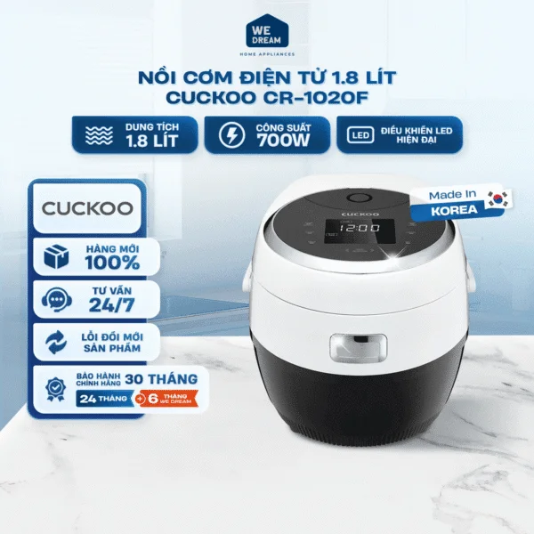 Nồi cơm điện tử Cuckoo CR-1020F/BKWHVNCV là lựa chọn hoàn hảo cho những ai muốn kết hợp giữa công nghệ tiên tiến, thiết kế sang trọng và sự tiện nghi trong căn bếp hiện đại.