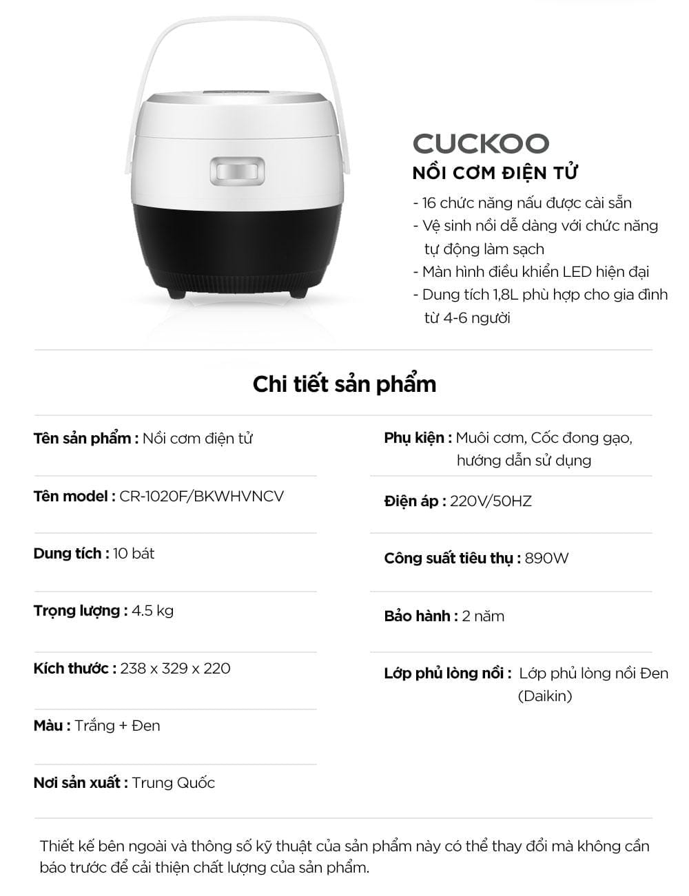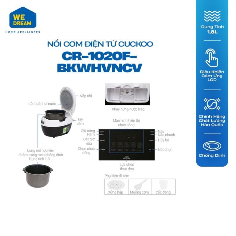 Nồi Cơm Điện Tử Cuckoo 1.8L Lít CR-1020F Nồi Cơm Điện Tử Cuckoo 1.8L Lít CR-1020F