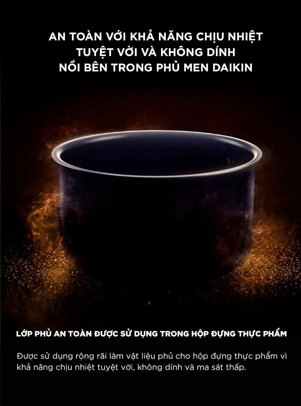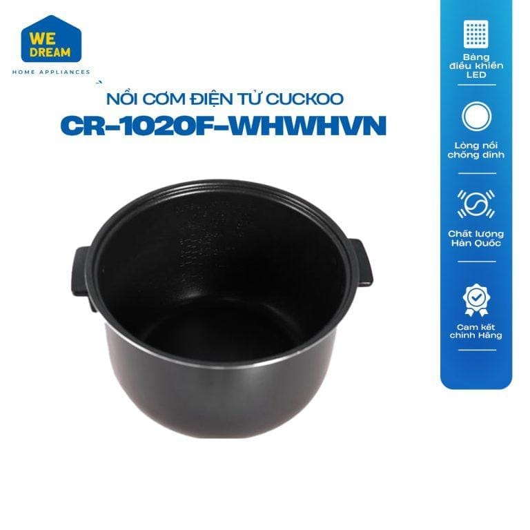 Nồi cơm điện CUCKOO CR-1020F/WHWHVN trang bị lòng nồi phủ men Xwall Black Coating cao cấp độc quyền của Cuckoo.