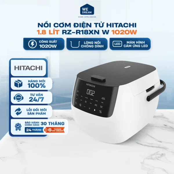 Nồi Cơm Điện Tử Hitachi 1.8 Lít RZ-R18XN W 1020W - Màn Hình Cảm Ứng Led