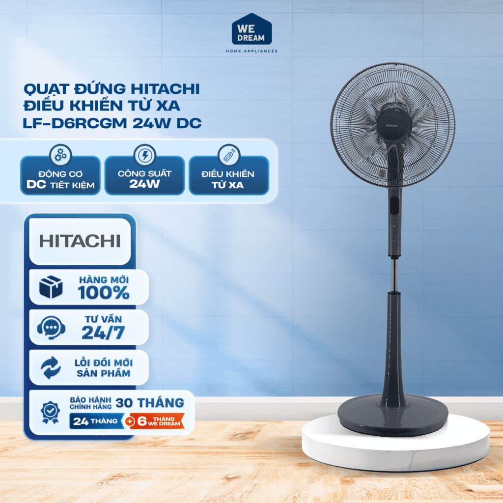 Quạt Đứng Hitachi LF-D6RCGM 24W Động Cơ DC, Tiết Kiệm điện, Điều Khiển Từ Xa