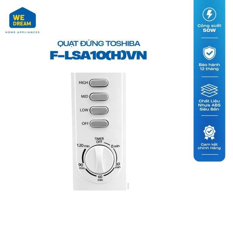 Quạt Đứng Toshiba 5 Cánh Màu Xám F-LSA10(H)VN 50W