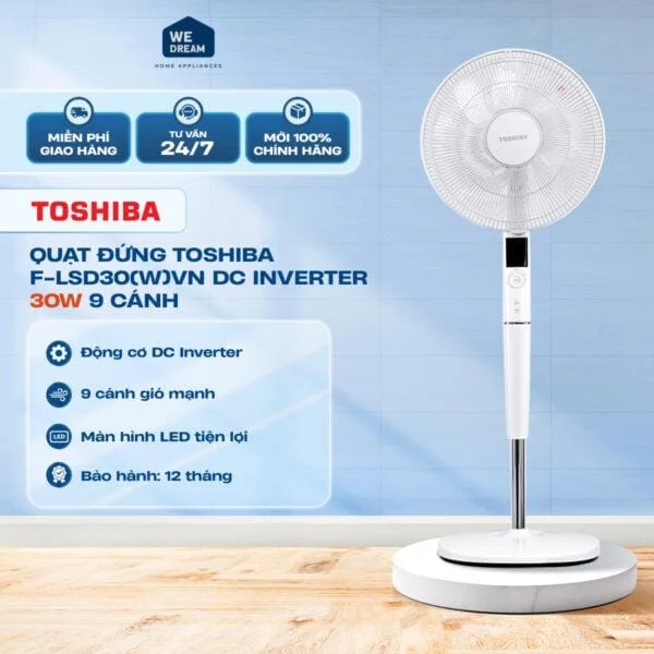 Quạt Đứng Toshiba 9 Cánh Màn Hình Led DC Inverter 30W F-LSD30(W)VN