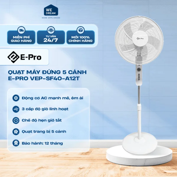 Quạt máy đứng 5 cánh E-Pro VEP-SF40-A12T