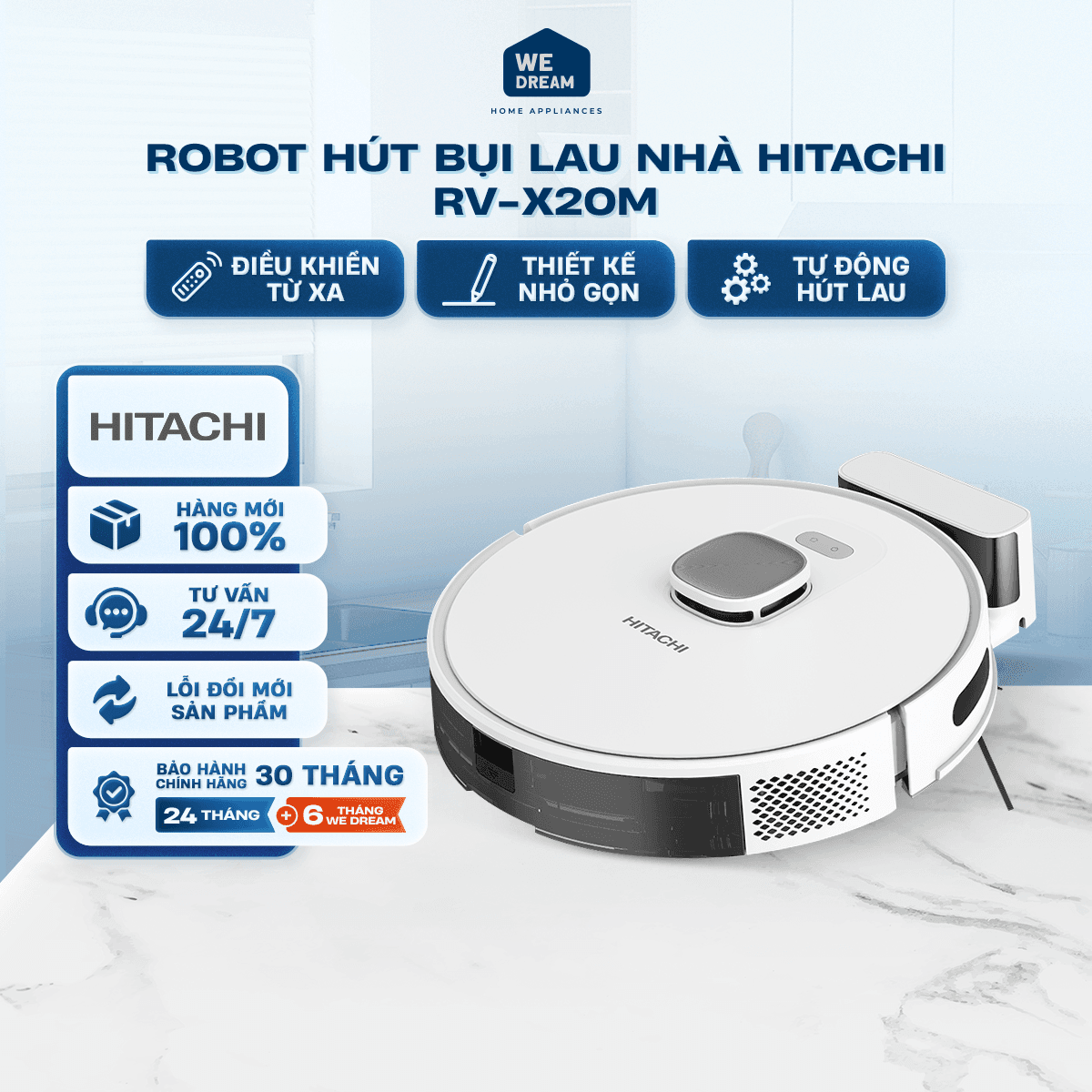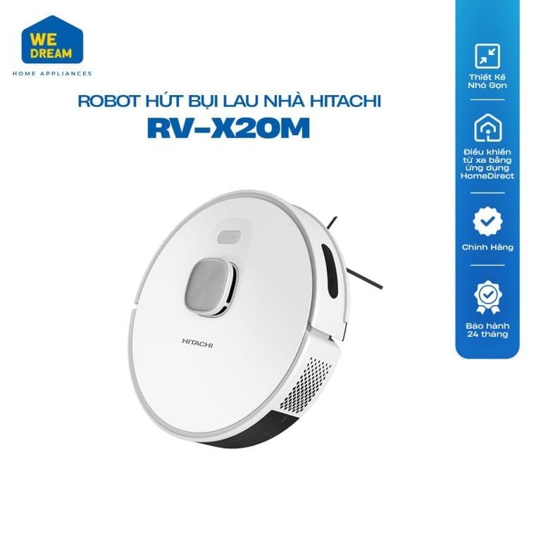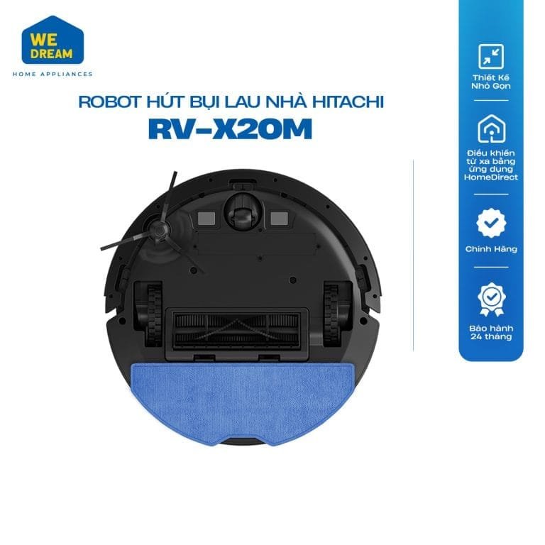 Robot Hút Bụi Lau Nhà Hitachi RV-X20M - Thiết Kế Nhỏ Gọn, Điều Khiển Từ Xa
